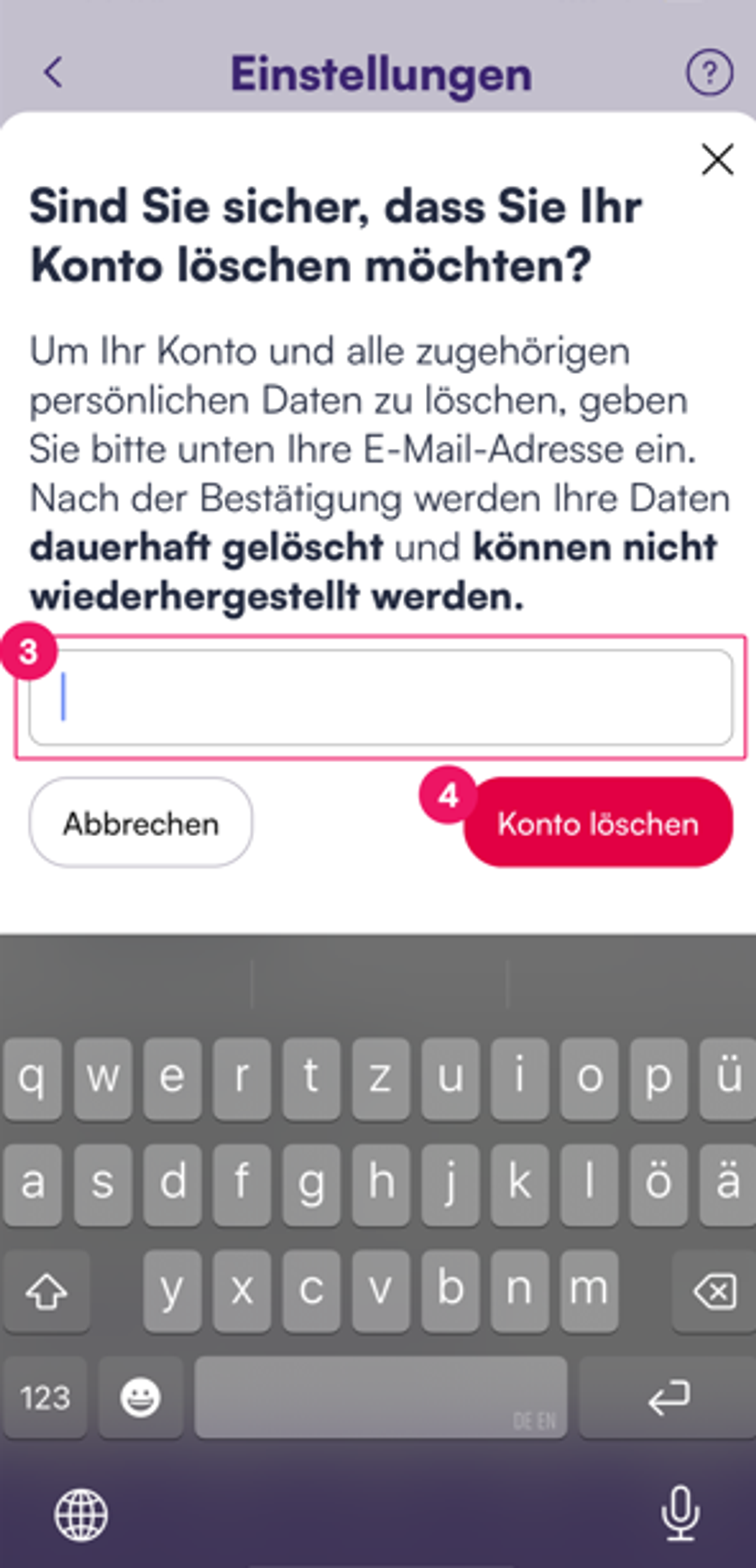 ⚠ Wichtig! Sobald dein Konto gelöscht wird, werden alle Schritte und Challenges dauerhaft mitgelöscht. Es gibt keine Möglichkeit, gelöschte Daten wiederherzustellen.
