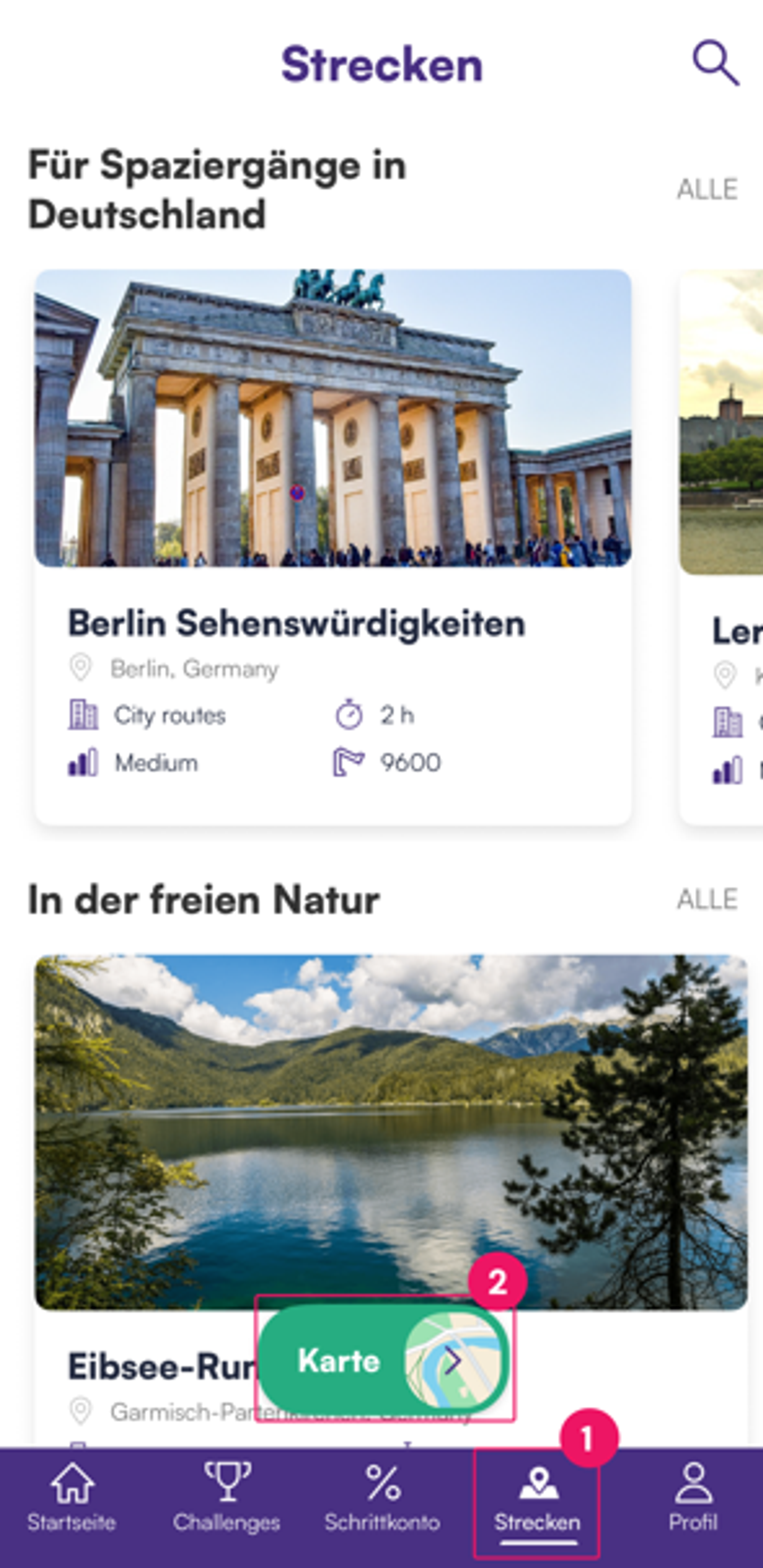 Wie finde und nutze ich Strecken in Walk15?