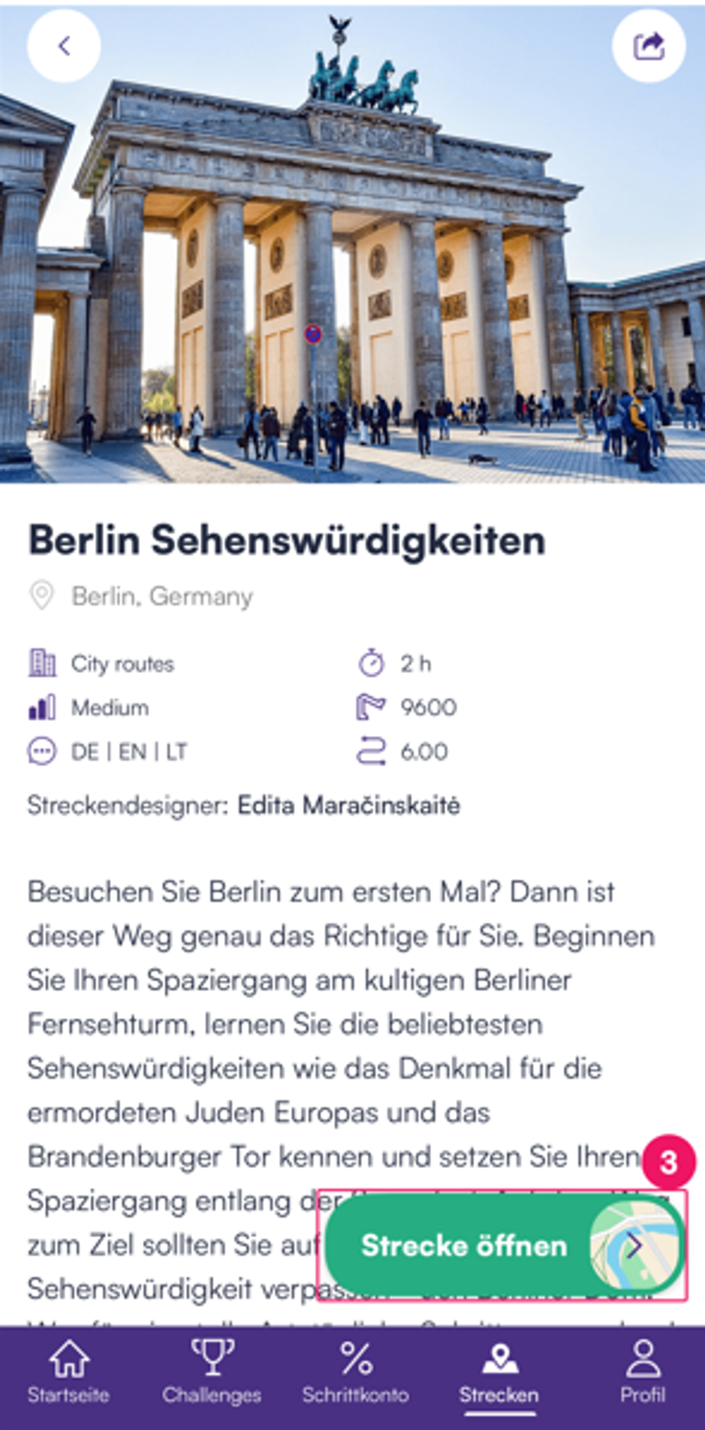 3. Tippe auf Strecke öffen: