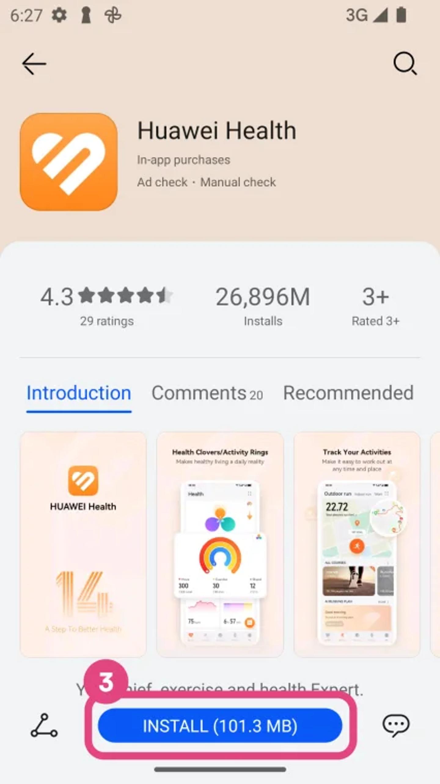 Using Huawei AppGallery, search for the Huawei Health app. Download and install it.