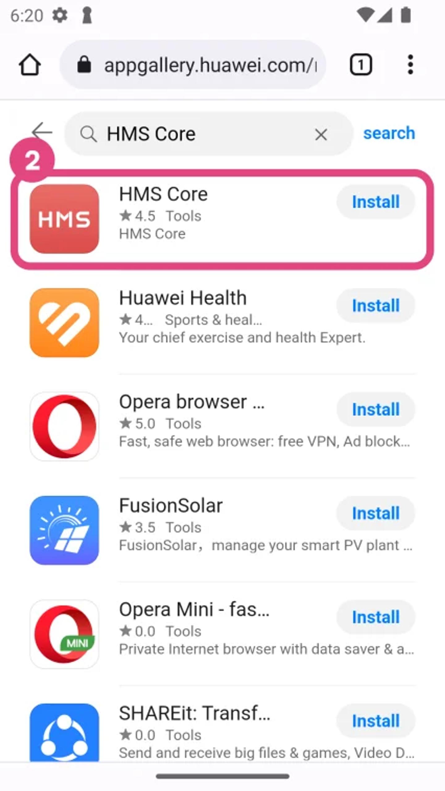 In the newly installed Huawei AppGallery, use the search function to find HMS Core. Download and install this app on your phone.