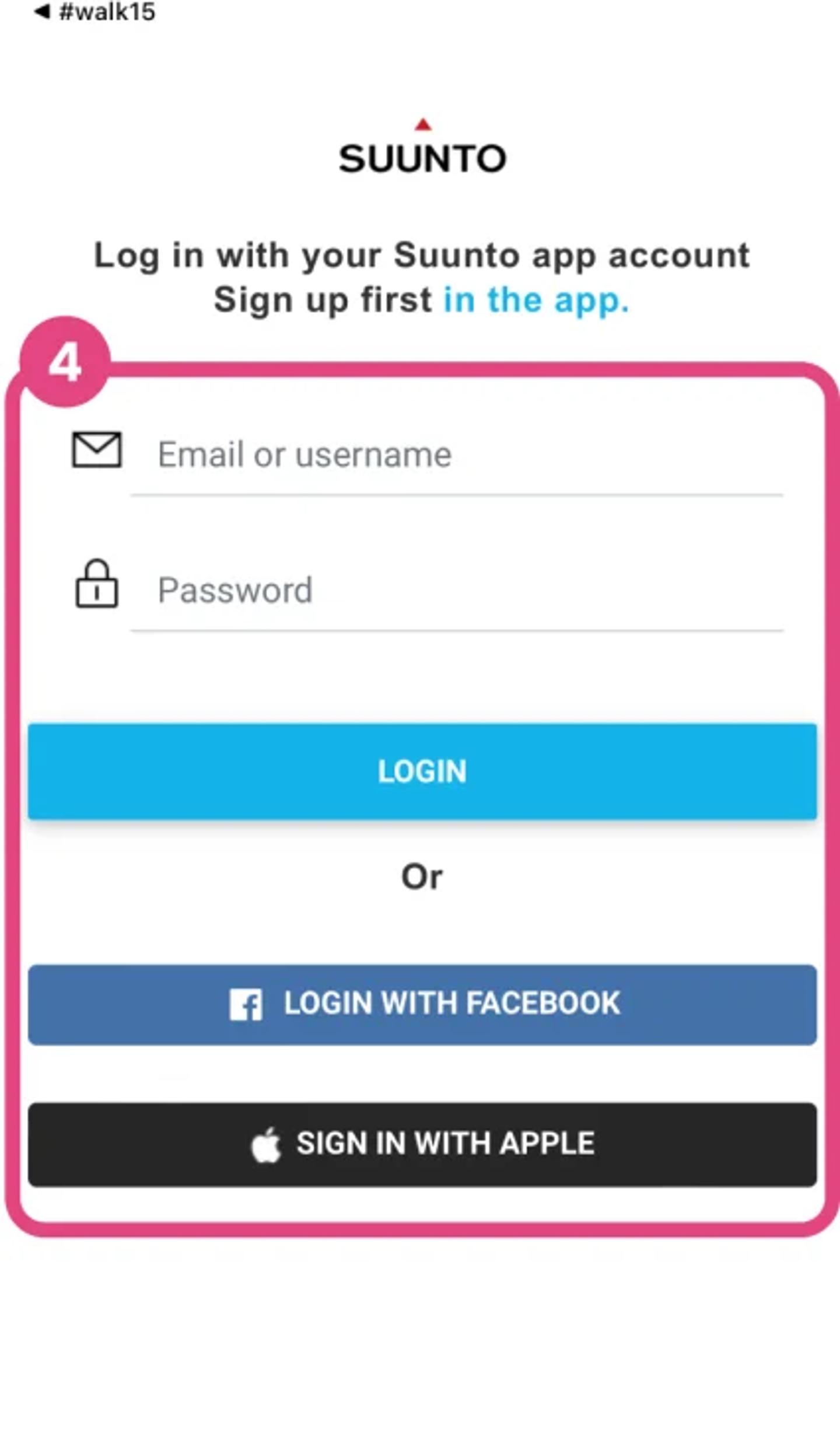 You will be redirected to the Suunto login page. Log into your Suunto account.