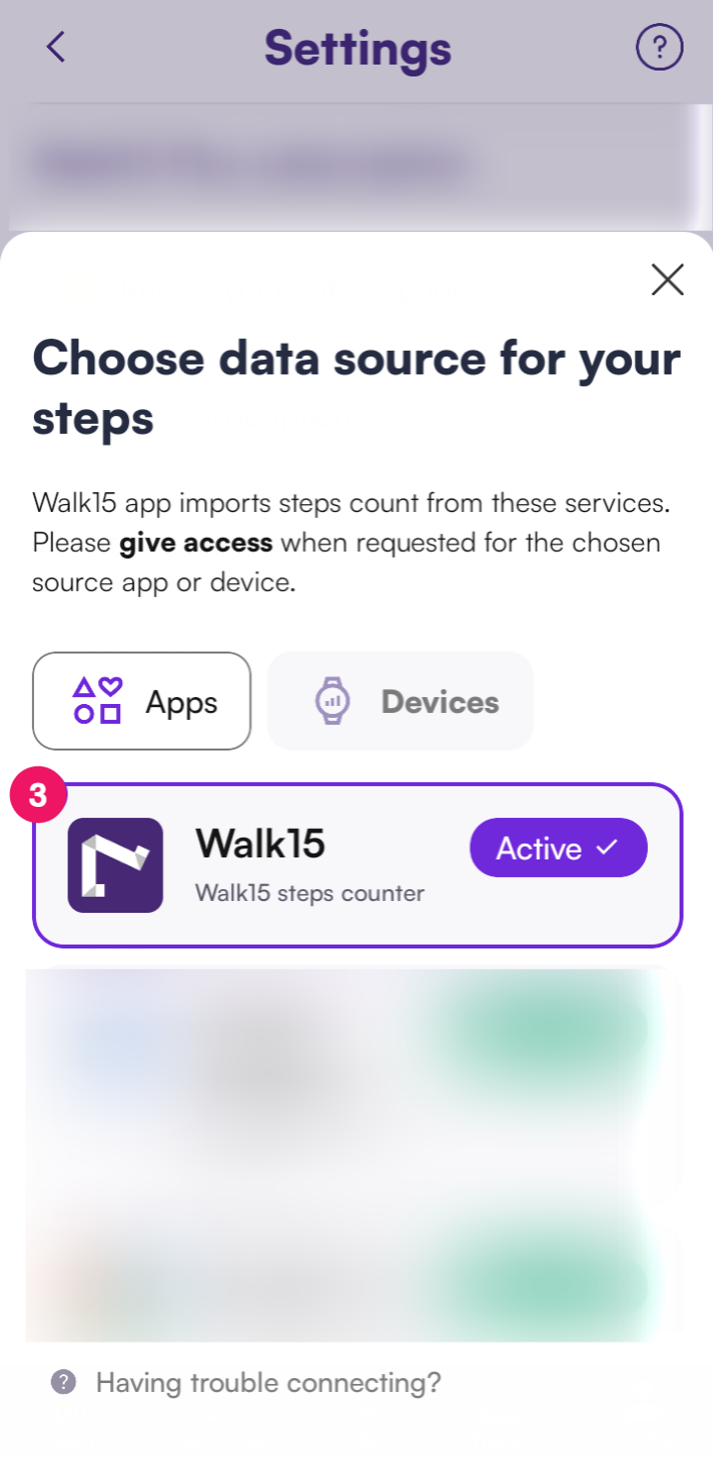 Return to the Walk15 app and check if your steps data is now visible. It may take a few minutes for the initial data sync to complete.
