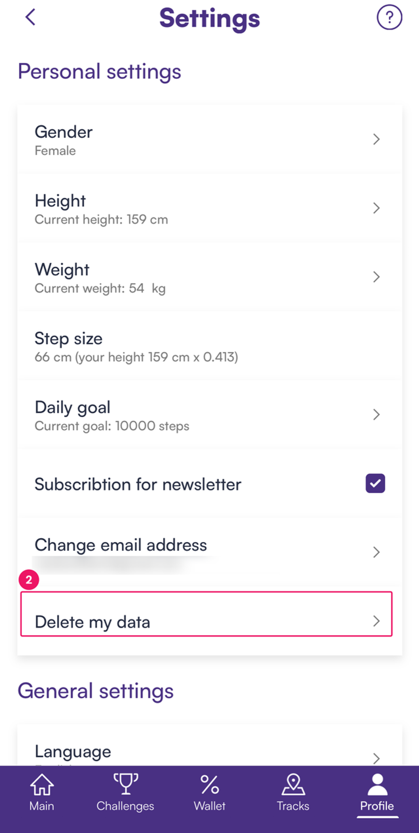 ⚠ Svarīgi! Pēc konta dzēšanas visi soļi un izaicinājumi tiks neatgriezeniski zaudēti. Dzēstos datus nav iespējams atjaunot.
